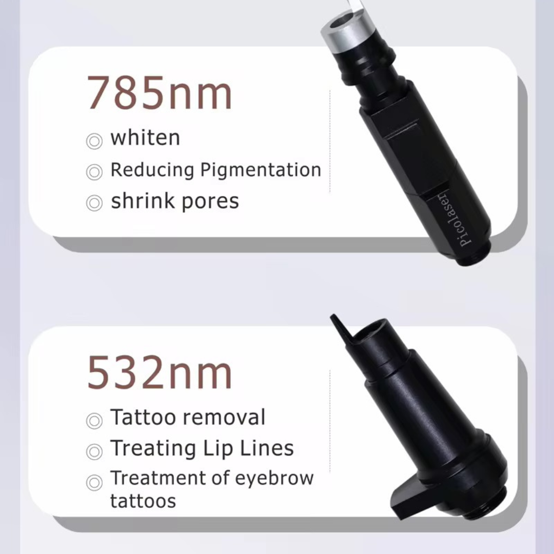 The 532nm wavelength of this product targets superficial skin concerns, such as vascular lesions, sun spots, and uneven pigmentation. It is specifically designed to address red and brown pigments near the skin's surface, providing a precise solution for a more youthful and even complexion. This wavelength acts as a complementary solution for improving skin health.