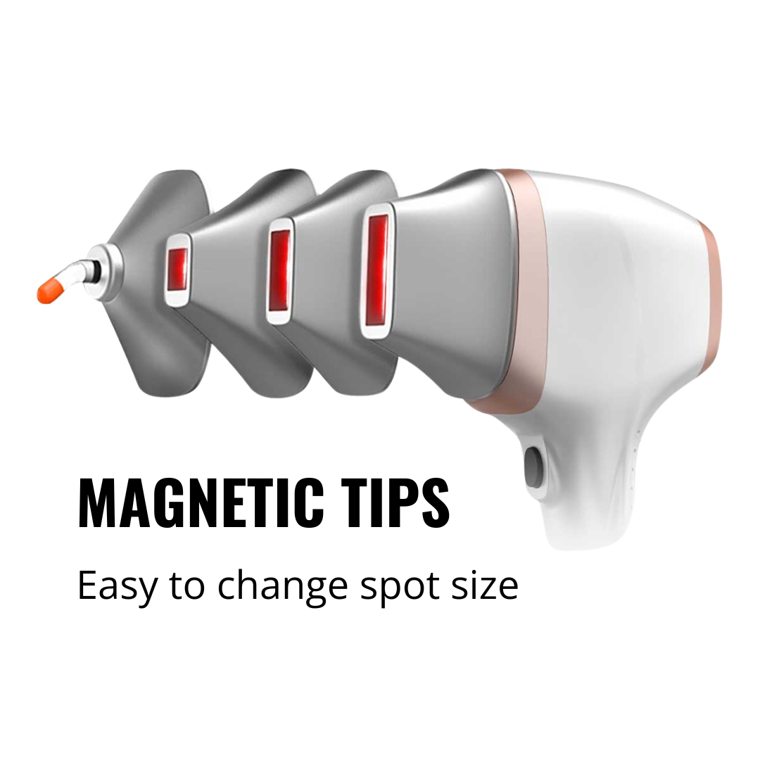 Optimize every procedure with LuminaShape Elect's 4 magnetic attachments. Experience swift treatments with the extra large spot sizes, or opt for precision with the smaller tip.